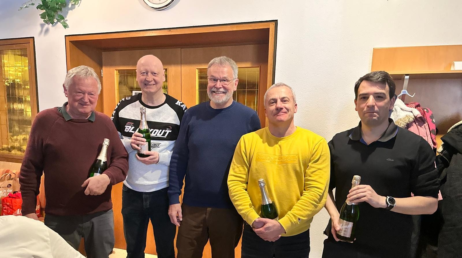 Silvesterpokal 2025 Auch 2025 fand wieder unser alljährlicher Tischtennis Silvesterpokal statt. Wir trafen uns am Dienstag, 30.12.25 abends in der Mühlbachhalle, um diesen beliebten internen Pokal auszuspielen. Insgesamt waren sieben 2er-Teams am Start, so dass wir mit einer 4er-Gruppe und einer 3er-Gruppe in den Wettbewerb starteten. In den Gruppenspielen mit jeweils zwei Einzeln und einem Doppel wurden die Halbfinalisten ermittelt. Aus dem ersten Halbfinale Martin/Damir gegen Felix/Lenny gingen Felix/Lenny mit einem 2:0 als Sieger hervor und standen somit im Finale. Im zweiten Halbfinale standen sich Tobias/Nick dem Duo Bernd/Andi R. gegenüber. Hier ging es etwas knapper zu, wobei Bernd/Andi letztlich mit 2:1 Sätzen ins Finale einziehen konnten. In einem spannenden Finale und bereits nach Mitternacht ging dann der Silvesterpokal zu Ende und Bernd/Andi konnten sich als Sieger feiern lassen. Alle Teilnehmer und Gäste freuten sich dann auf die leckere Gulaschsuppe von Joachim zum Abschluss des Silvesterpokals und bei einem gemütlichen Kaltgetränk ließen wir dann den Silvesterpokal 2025 ausklingen.