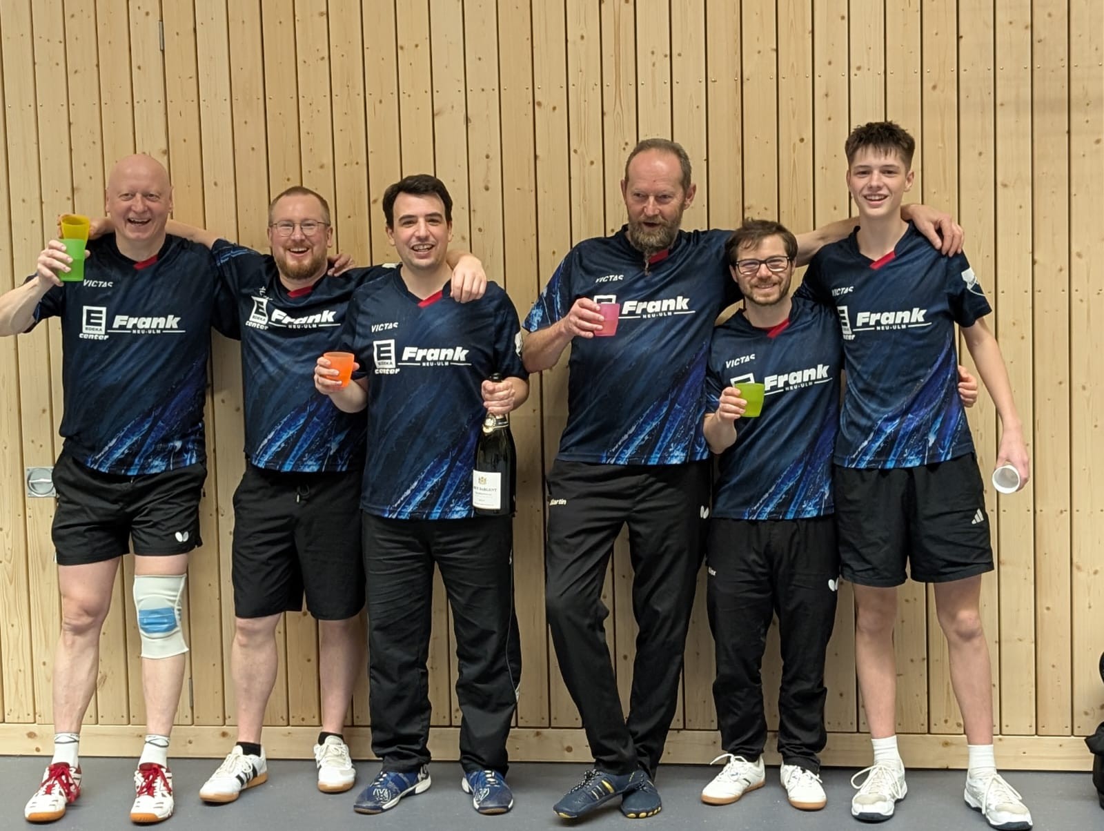 Mit einer starken Rückrunde ohne Punktverlust konnten wir beim TTC Witzighausen die Meisterschaft einen Spieltag vor Ende der Saison klarmachen und freuen uns auf das letzte Heimspiel mit anschließender Meisterfeier. Von Anfang an war uns bewusst, dass wir bei diesem vorentscheidenden Spiel nur mit einer konzentrierten Leistung das Ziel Meister erreichen können. In der neuen Halle angekommen, war klar, dass Witzighausen mit den besten drei Spielern antreten würde, im hinteren Paarkreuz allerdings mussten 2 Senioren aushelfen, die dann als Doppel doppelt so alt waren wie Felix und Martin zusammen.... Nach den Doppeln 2:1 in Führung liegend konnten wir diese auf 7:2 ausbauen, mussten aber in der zweiten Hälfte der Partie doch noch 2 Punkte an Witzighausen abgeben. Aber Jens und Felix, die an diesem Tag alle ihre Spiele gewannen, machten den Sieg perfekt.